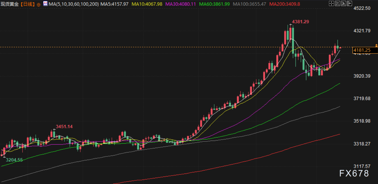 分析师表示,贵金属市场卷入了股票、债券、美元和加密货币的全面抛售潮。随着市场对美联储降息预期降温,以及投资者在政府停摆结束后进行获利了结,金价短期内可能继续承压,但仍维持在4150美元关键技术支撑位上方。