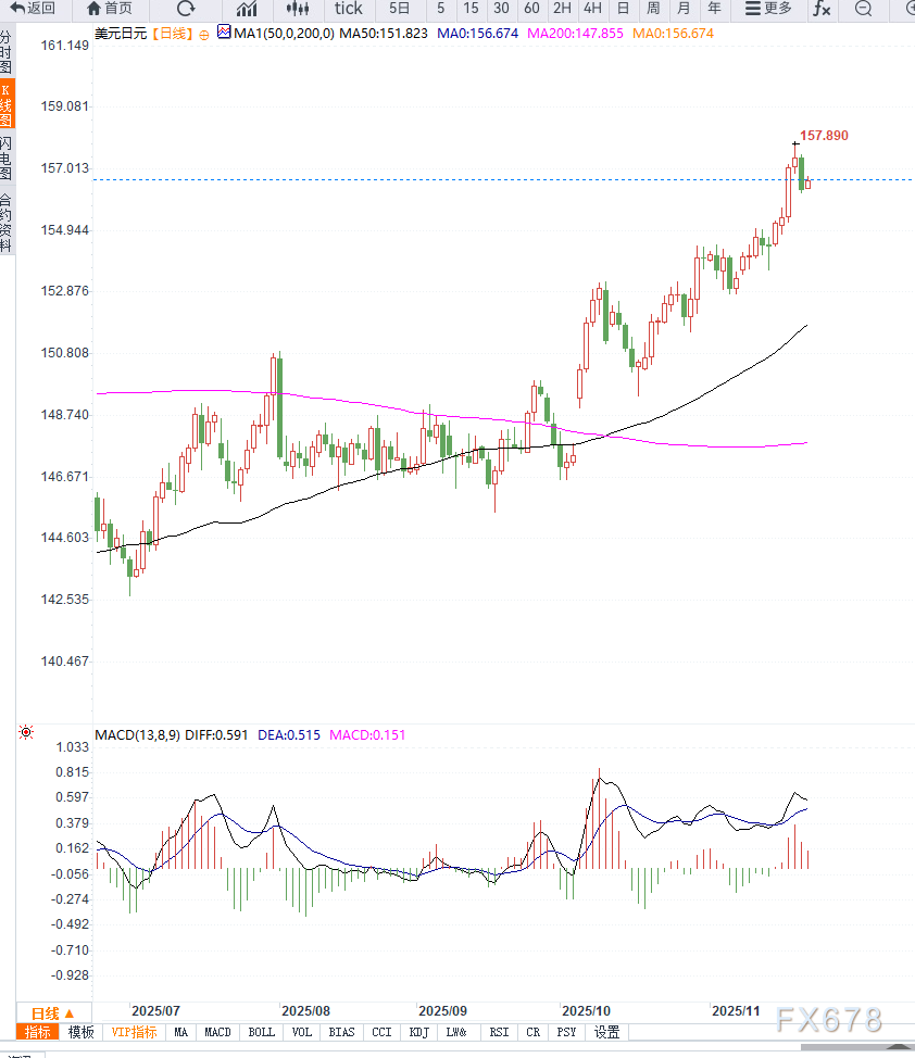 这在一定程度上限制了日元空头的进一步押注。同时,美联储12月降息预期的升温对美元形成一定抑制,但整体美元仍在高位,支撑美元兑日元。